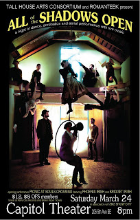 My 11-year-old niece, Phoenix, and I performed as the opening act for a collaborative production by Romanteek and the Tall House Arts Consortium, called "All of the Shadows Open" - an astounding evening of live music, daring acrobatics, and eloquent movement...